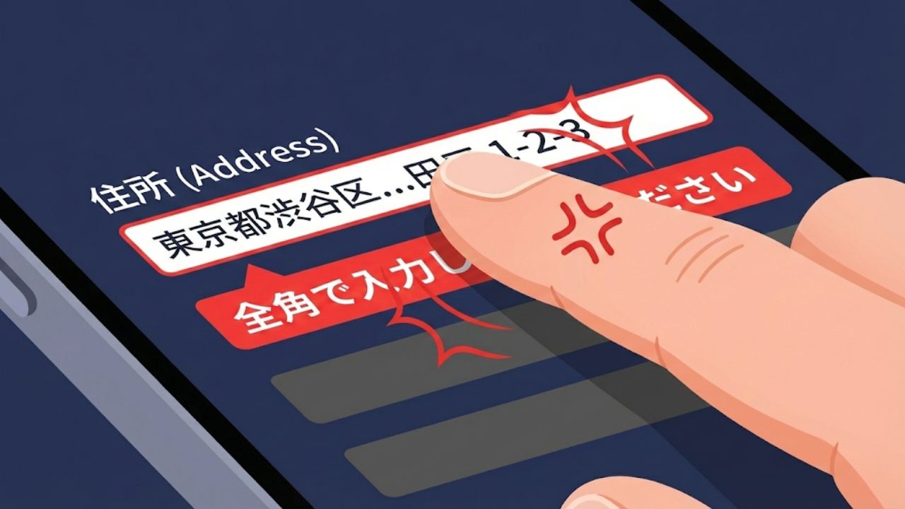 ……思わず天を仰ぎたくなりますよね。つい先ほどまでスムーズに「郵便番号」や「電話番号」を半角で入力させておきながら、なぜか「番地」に差し掛かった瞬間にルールが変わる。この一貫性のなさに、私もこれまで何度打ちのめされてきたか分かりません。実は本日も、ある大手飲食店のアプリ登録をしようとした際にこの現象に直面し、「大手でもまだこれか……」とスマホを置きそうになりました。