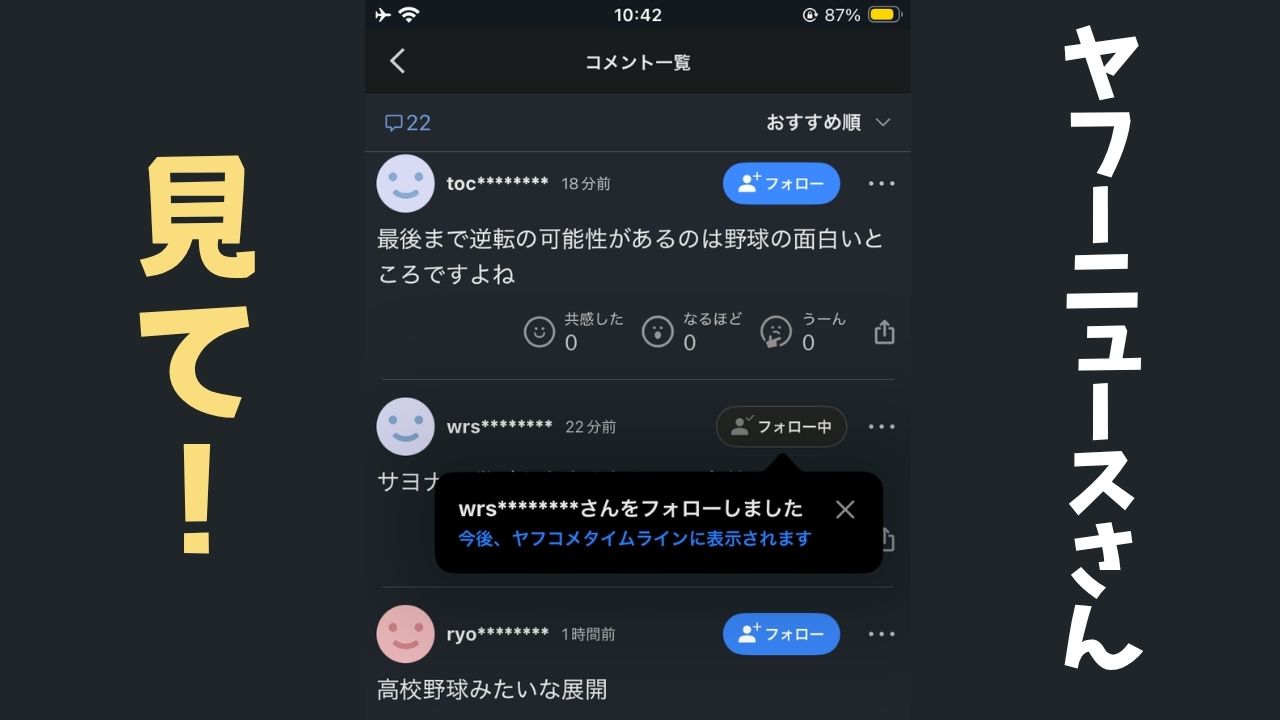 そんなYahoo!ニュースですが、最近少し仕様が変わりましたよね。特定のコメント主を継続的に追いかけられる「フォロー機能」が追加されました。一人のユーザーとして、そしてWebに携わる者の視点から、この新機能がもたらす「価値」と、一方で発生してしまった「使い勝手の悩み」について、今回はじっくり深掘りしてみたいと思います(^^)
